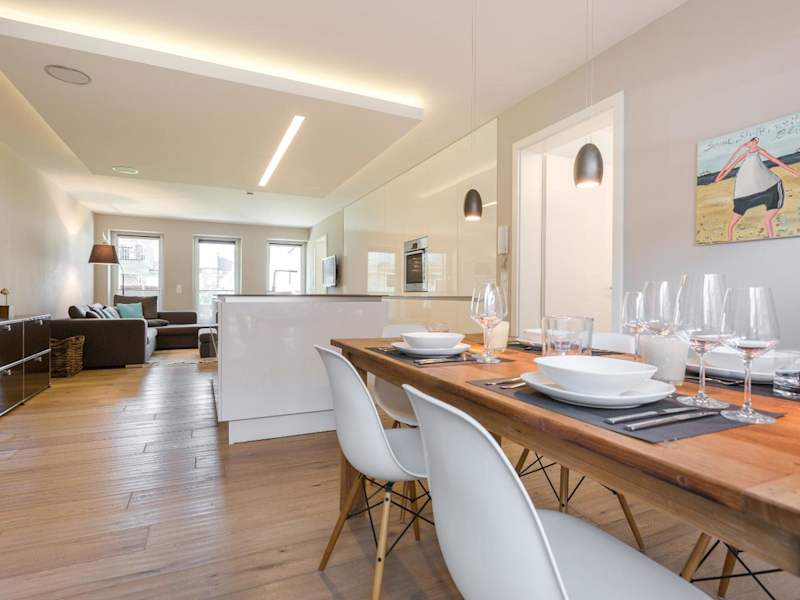 Die Ferienwohnung bietet Platz in zwei Schlafzimmern und verfügt über eine komplett ausgestattete Küche mit Kühlschrank und Geschirrspüler. Es stehen zwei Badezimmer mit Dusche und kostenlosen Pflegeprodukten zur Verfügung. Handtücher und Bettwäsche werden bereitgestellt.