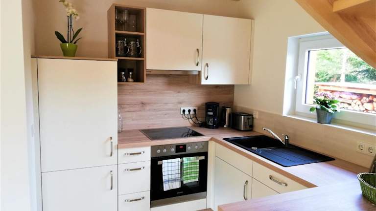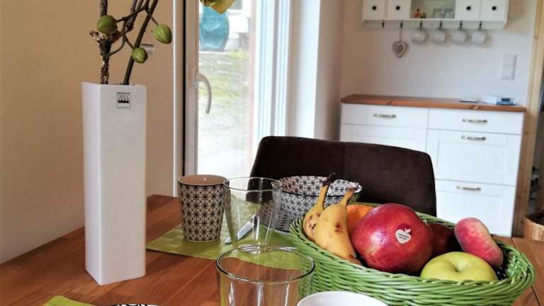 Die gut ausgestattete Küche der Ferienwohnung verfügt über einen Kühlschrank und einen Geschirrspüler. Es sind keine spezifischen Informationen zu Verpflegungsmöglichkeiten oder Restaurants in der Nähe vorhanden.