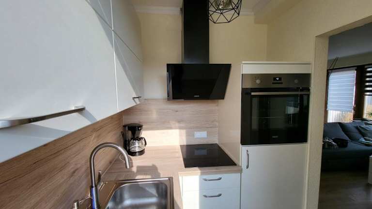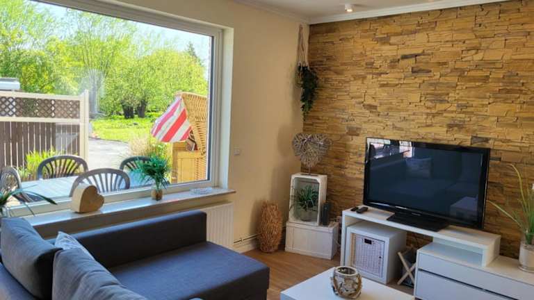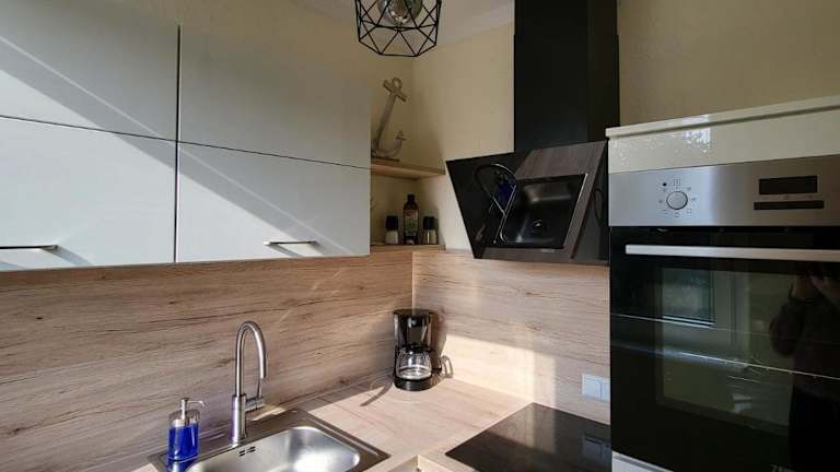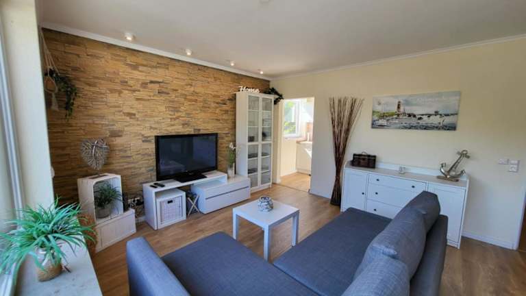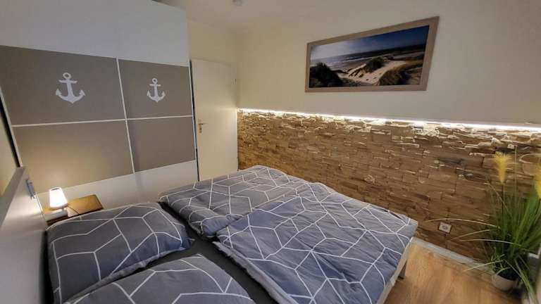 Die Ferienwohnung verfügt über ein Schlafzimmer, ein Wohnzimmer, einen Flachbild-TV und eine gut ausgestattete Küche mit Kühlschrank sowie Geschirrspüler. Es gibt ein Badezimmer mit Dusche. Handtücher und Bettwäsche sind ebenfalls vorhanden.