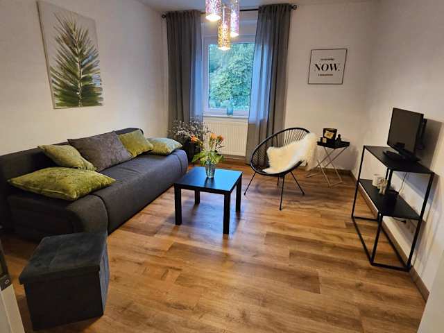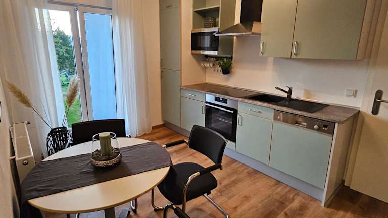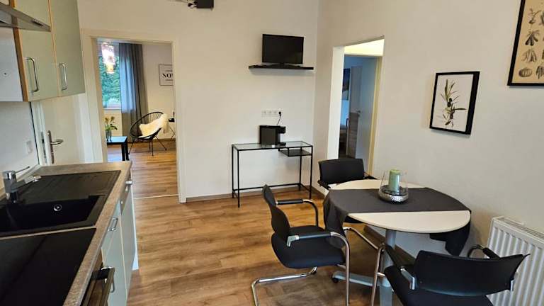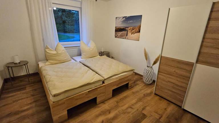 Die Ferienwohnung beinhaltet 1 Schlafzimmer sowie ein Wohnzimmer. Zur Ausstattung gehören ein Satelliten Flachbild-TV, ein Essbereich und eine Küche mit Kühlschrank. Handtücher und Bettwäsche werden bereitgestellt.