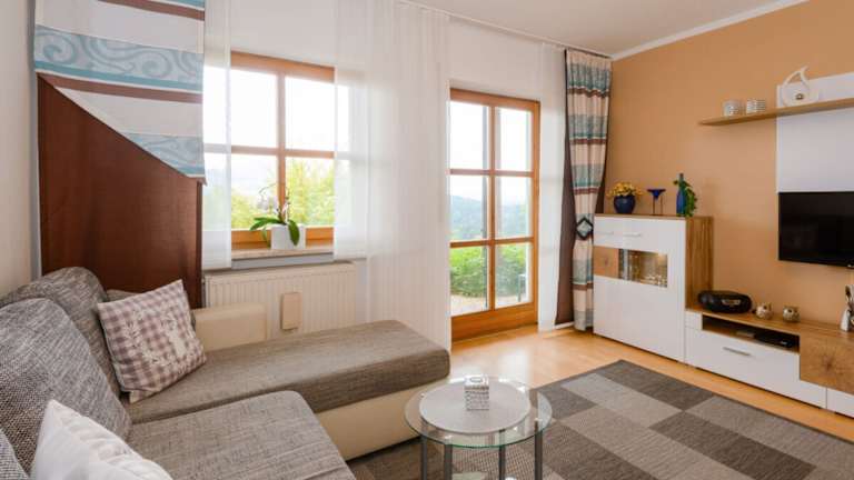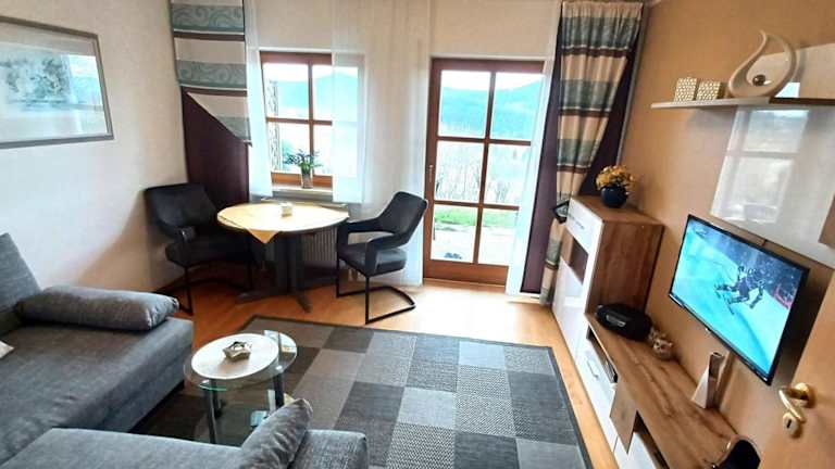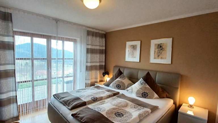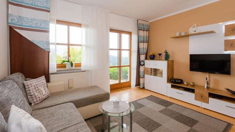 Die Unterkunft Fewo-Harlachberg-Blick-1 bietet Übernachtungsmöglichkeiten in einer Ferienwohnung mit einem Garten und kostenlosem WLAN.