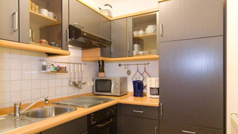 Die Ferienwohnung verfügt über eine Terrasse, ein Schlafzimmer, ein Wohnzimmer sowie eine gut ausgestattete Küche, die mit einem Kühlschrank und einem Ofen ausgestattet ist. Handtücher und Bettwäsche werden bereitgestellt.