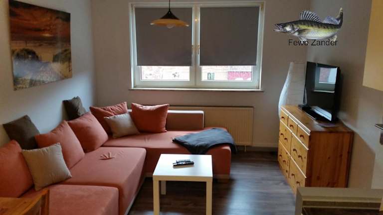 Die Wohneinheiten der Fewo Barsch Zander Hecht verfügen über Parkettböden und eine voll ausgestattete Küche mit Kühlschrank, Backofen, Kochfeld, Toaster, Kaffeemaschine und Wasserkocher. Ein Essbereich und ein Flachbild-Sat-TV sind ebenfalls vorhanden. Jede Wohneinheit verfügt über ein eigenes Badezimmer mit Dusche und Haartrockner.
