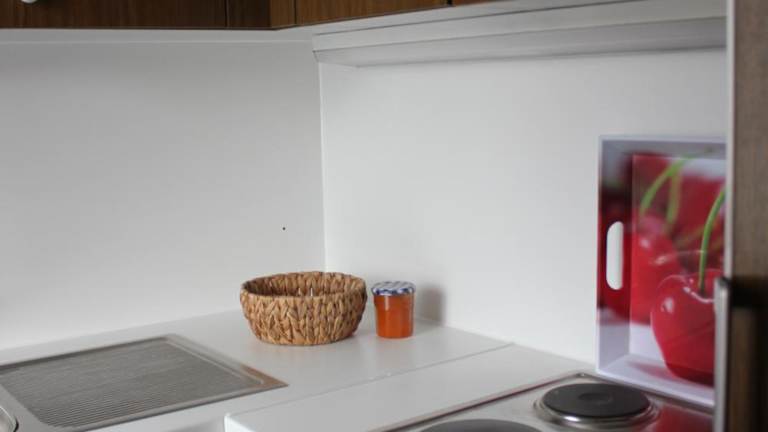 Die Ferienwohnung verfügt über einen Balkon, ein Schlafzimmer, ein Wohnzimmer sowie eine gut ausgestattete Küche, die mit einem Kühlschrank und einem Ofen ausgestattet ist. Handtücher und Bettwäsche werden den Gästen bereitgestellt.