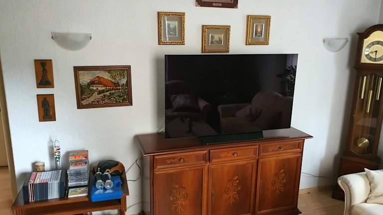 Die Ferienwohnung verfügt über ein Schlafzimmer und ein Wohnzimmer. Zur Ausstattung gehören ein Flachbild-TV sowie eine gut ausgestattete Küche mit Kühlschrank und Ofen. Zudem steht ein Badezimmer mit einer Badewanne zur Verfügung. Handtücher und Bettwäsche werden bereitgestellt.