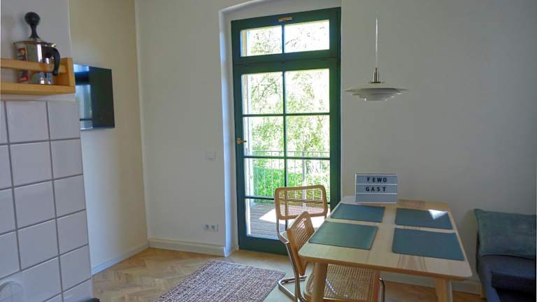 Die FEWO mit Sauna & Gartenblick bietet Übernachtungsmöglichkeiten in einer ruhigen Umgebung. Die Unterkunft verfügt über einen Balkon und bietet Zugang zu einer Sauna. Zudem stehen den Gästen ein kostenloser Privatparkplatz und kostenloses WLAN zur Verfügung.