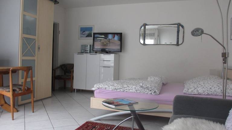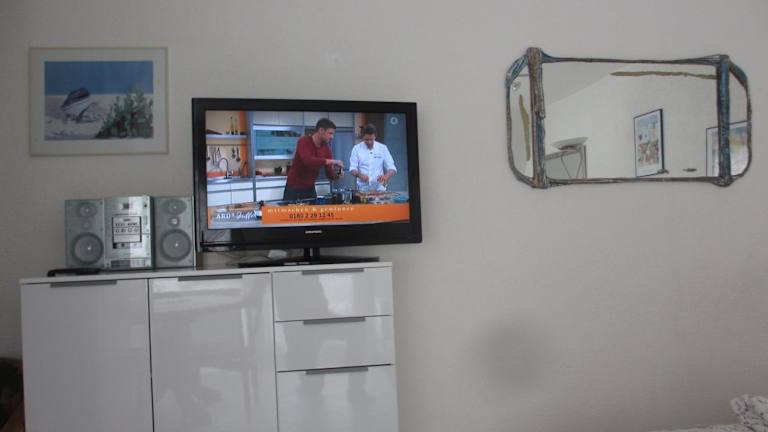 Die Ferienwohnung umfasst ein Schlafzimmer, Klimaanlage, einen Flachbild-TV sowie eine voll ausgestattete Küche mit Mikrowelle und Toaster.