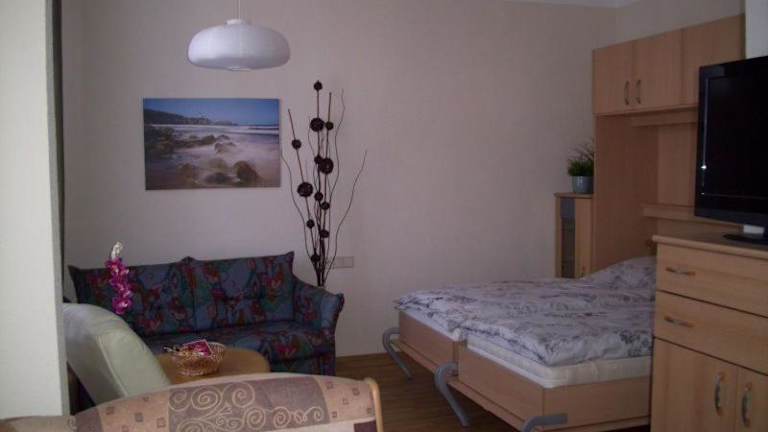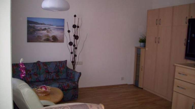 Die Ferienwohnung verfügt über ein Schlafzimmer und ein Wohnzimmer, das mit einem Kabel-TV ausgestattet ist. Außerdem ist eine voll ausgestattete Küchenzeile vorhanden, die einen Kühlschrank und eine Herdplatte beinhaltet. Das Badezimmer ist mit einem Haartrockner ausgestattet. Handtücher und Bettwäsche können gegen Aufpreis bereitgestellt werden.