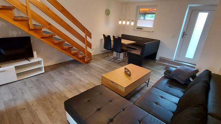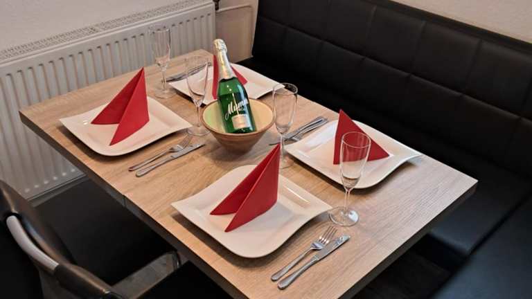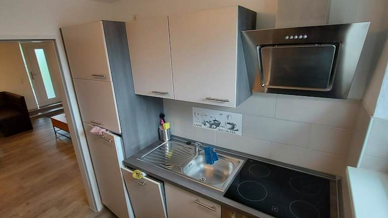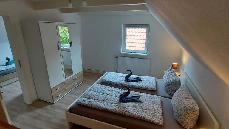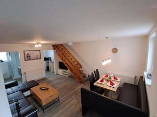 Die Ferienwohnung umfasst zwei Schlafzimmer und eine voll ausgestattete Küche mit Kühlschrank und Geschirrspüler. Ein Flachbild-TV und ein Sitzbereich stehen ebenfalls zur Verfügung. Das Badezimmer ist mit einer Dusche ausgestattet. Für zusätzlichen Komfort können Handtücher und Bettwäsche gegen Aufpreis bereitgestellt werden.