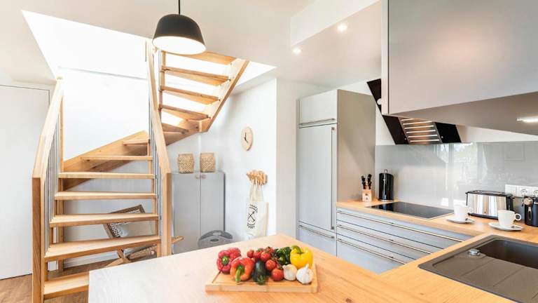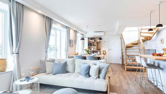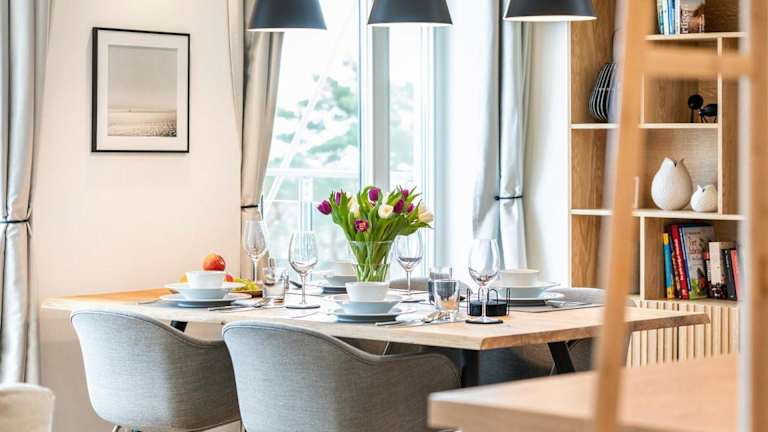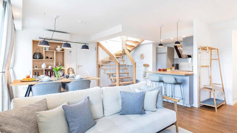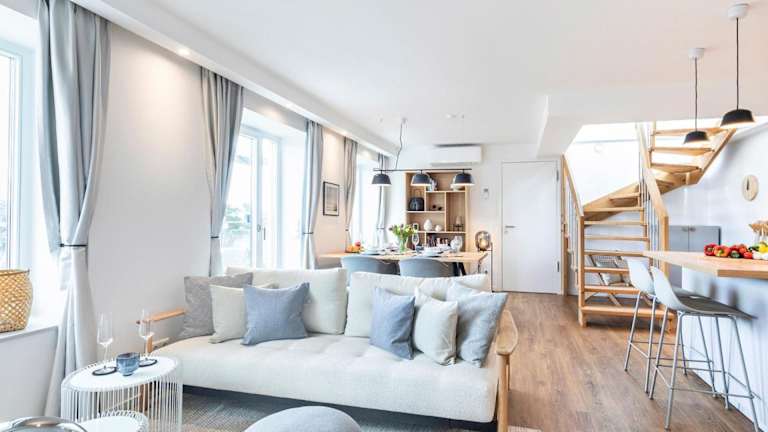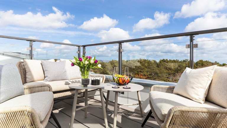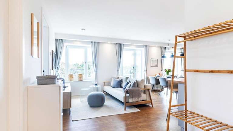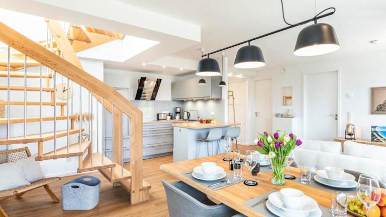 Die FeWo Prora - Deck54 Dachterrasse ist eine Ferienwohnung, die sich durch kostenloses WLAN und Klimaanlage auszeichnet. Zusätzlich steht eine Terrasse mit Meerblick zur Verfügung.