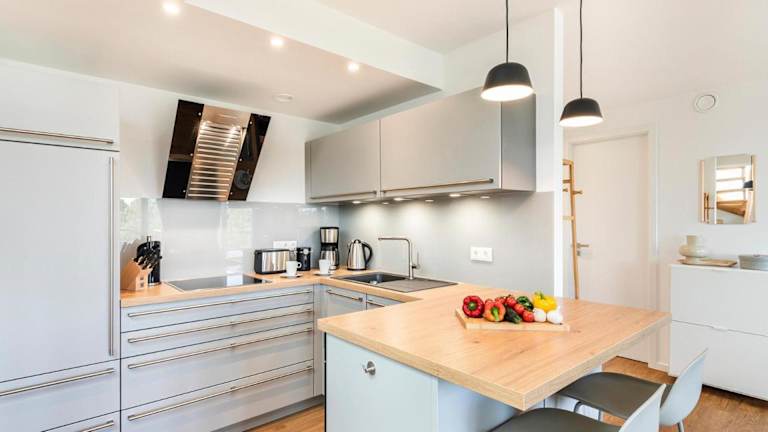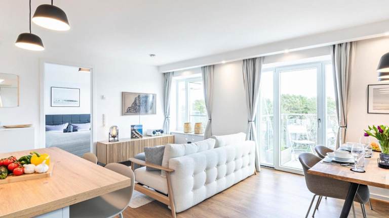 Die Ferienwohnung verfügt über zwei Schlafzimmer, ein Wohnzimmer mit Flachbild-TV, eine gut ausgestattete Küche mit Kühlschrank und Geschirrspüler sowie zwei Badezimmer mit Dusche. Ein Balkon ergänzt die Ausstattung, und auf Wunsch können Handtücher und Bettwäsche gegen Aufpreis zur Verfügung gestellt werden.