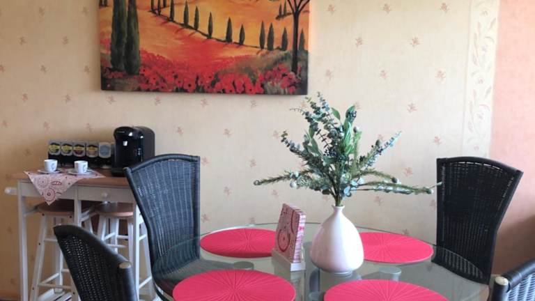 Die Ferienwohnung verfügt über ein Schlafzimmer, ein Wohnzimmer und eine voll ausgestattete Küchenzeile mit Kühlschrank und Kaffeemaschine. Zudem gibt es ein Badezimmer mit Dusche und Haartrockner. Die Ausstattung umfasst Klimaanlage, Heizung sowie kostenfreie Handtücher und Bettwäsche.