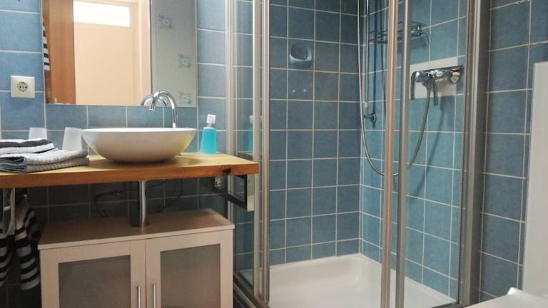 Die Ferienwohnung besteht aus einem Schlafzimmer, einem Wohnzimmer und einer voll ausgestatteten Küche, die mit einem Kühlschrank und einer Kaffeemaschine ausgestattet ist. Das Badezimmer verfügt über eine Dusche und einen Haartrockner. Handtücher und Bettwäsche werden bereitgestellt.