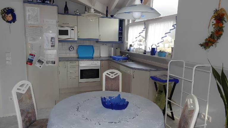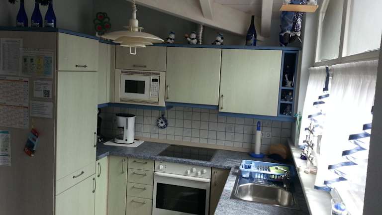 Die Ferienwohnung verfügt über ein Schlafzimmer und ist mit einem TV sowie einer voll ausgestatteten Küchenzeile ausgestattet. Diese umfasst einen Kühlschrank, Geschirrspüler, Waschmaschine, Ofen und Mikrowelle. Zur Verfügung stehen ebenfalls Handtücher und Bettwäsche. Die Unterkunft bietet Balkon und Gartenmöbel und ist insgesamt gut für längere Aufenthalte geeignet.