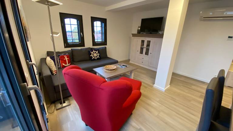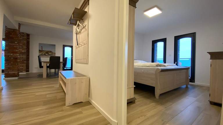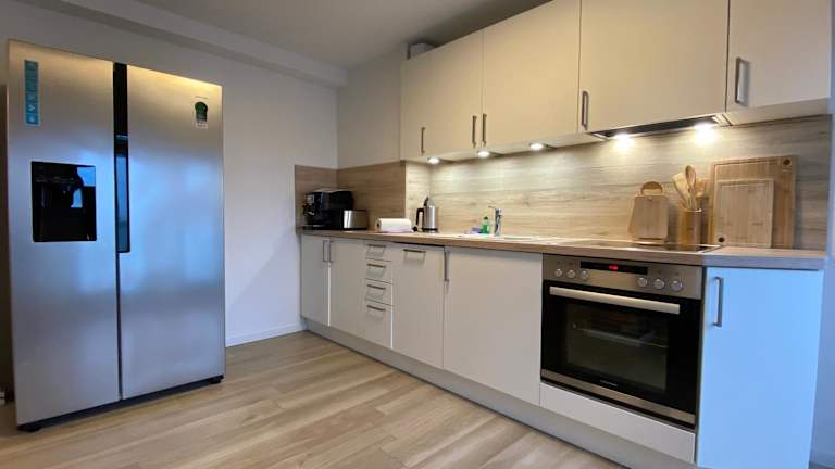 Die Ferienwohnung umfasst zwei Schlafzimmer, ein Wohnzimmer, eine voll ausgestattete Küche mit Kühlschrank und Kaffeemaschine sowie ein Badezimmer mit Dusche und Haartrockner. Bettwäsche und Handtücher sind gegen Aufpreis verfügbar. Es bietet zudem moderne Annehmlichkeiten wie WLAN und Heizung.