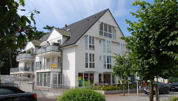 Das Haus befindet sich ca. 400 Meter vom freinsandigen Ostseestrand entfernt. Beim Bäcker im EG des Hauses bekommen Sie morgens Ihre frischen Brötchen. Ein kleiner Supermarkt befindet sich direkt nebenan und führt ein Grundsortiment.