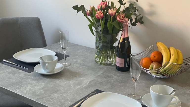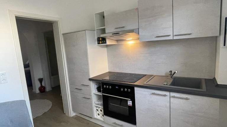 Die Ferienwohnung ist mit einem Schlafzimmer ausgestattet und bietet eine Küche, die mit einem Kühlschrank und einem Ofen ausgestattet ist. Ein Flachbild-TV und ein Sitzbereich sind ebenfalls vorhanden. Das Badezimmer umfasst eine Dusche. Handtücher und Bettwäsche werden in der Unterkunft bereitgestellt.