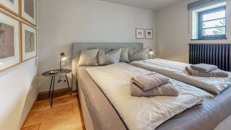 Die Ferienwohnung verfügt über 2 Schlafzimmer, einen Flachbild-TV mit Satellitenempfang, eine gut ausgestattete Küche mit Kühlschrank und Geschirrspüler sowie 2 Badezimmer mit Dusche. Handtücher und Bettwäsche werden bereitgestellt. Allergikerfreundliche Zimmer sind ebenfalls verfügbar.