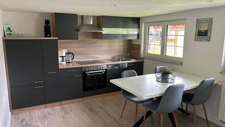 Die Ferienwohnung umfasst ein Schlafzimmer, ein Wohnzimmer und eine voll ausgestattete Küche, die mit einem Kühlschrank und einer Kaffeemaschine ausgestattet ist. Des Weiteren verfügt die Wohnung über ein Badezimmer mit Dusche. Handtücher und Bettwäsche werden bereitgestellt. Die Einrichtung bietet Nichtraucherzimmer, Familienzimmer sowie Zugang zu Gartenmöbeln und einem Picknickbereich.