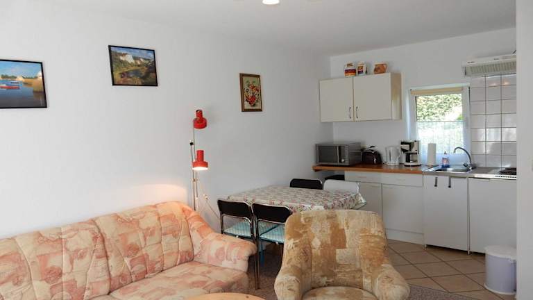 Die FeWo WE 6402 Ferien u Angeln auf Rügen bietet komfortable Apartments, die mit einer Küche ausgestattet sind. Hier finden Sie alles, was Sie für die Zubereitung Ihrer eigenen Mahlzeiten benötigen, einschließlich einer Mikrowelle und einem Kühlschrank. Handtücher werden gestellt, damit Sie sich um nichts kümmern müssen. Die Apartments bieten auch einen Grillplatz, so dass Sie im Freien speisen und die frische Luft genießen können.