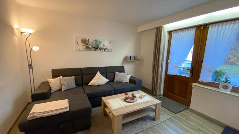 Die Ferienwohnung verfügt über ein Schlafzimmer und ein Badezimmer. Zur Ausstattung gehören Bettwäsche, Handtücher, ein Flachbild-TV mit Satellitenkanälen, ein Essbereich sowie eine voll ausgestattete Küchenzeile. Weiterhin gibt es eine Terrasse mit Bergblick.