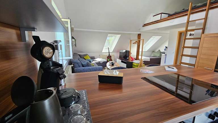 Die Ferienwohnung besteht aus einem Schlafzimmer, einem Wohnzimmer, einer voll ausgestatteten Küche mit Kühlschrank und Kaffeemaschine sowie einem Badezimmer mit Dusche und Haartrockner. Handtücher und Bettwäsche werden bereitgestellt. Es sind keine Haustiere erlaubt und die Nutzung der Unterkunft ist für Junggesellen-/Junggesellinnenabschiede oder ähnliche Feiern nicht gestattet.