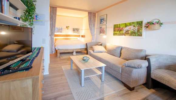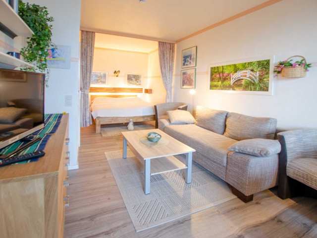 Die Unterkunft umfasst ein Schlafzimmer, ein Wohnzimmer und einen Balkon mit Meerblick. Zur Ausstattung des Zimmers gehören ein Flachbild-TV, eine gut ausgestattete Küche mit Kühlschrank und Mikrowelle sowie ein Badezimmer mit Dusche. Handtücher und Bettwäsche können gegen Aufpreis bereitgestellt werden.