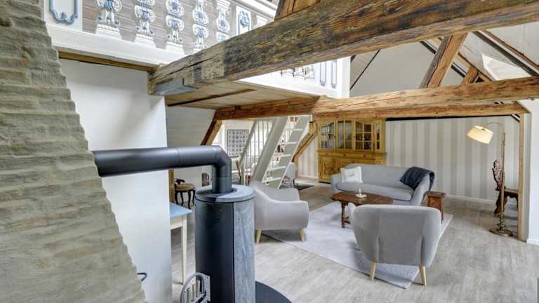 fewo1846 - Flensburger Möwe ist eine stilvolle Wohnung in einem historischen Gebäude, die zwei Schlafzimmer bietet und Ausblicke auf das Meer ermöglicht. Die Unterkunft ist die ideale Wahl für einen entspannenden Aufenthalt in Flensburg und bietet einen Balkon sowie einen Gartenblick.