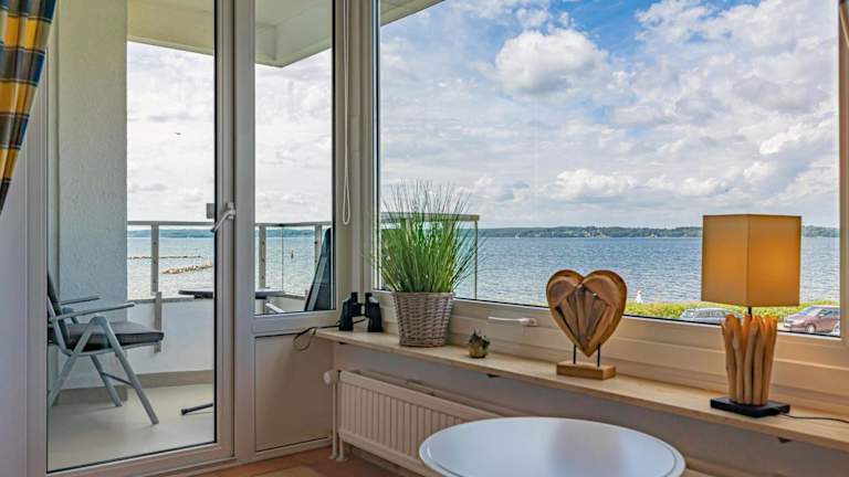 fewo1846 - MeerSinne ist eine stilvolle Wohnung, die über einen Balkon mit Meerblick verfügt. Der Check-in ist zwischen 15:00 und 20:00 Uhr möglich, während der Check-out bis 10:00 Uhr erfolgen muss. In der Unterkunft sind keine Junggesellen-/Junggesellinnenabschiede oder ähnliche Feiern gestattet.