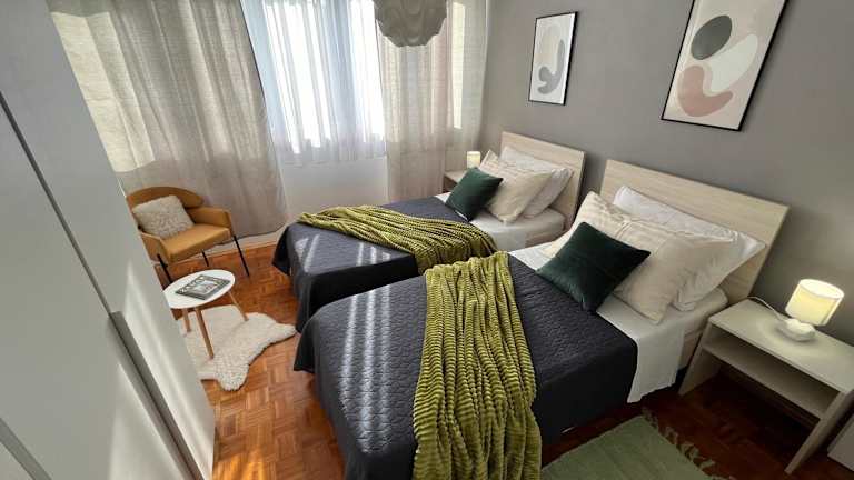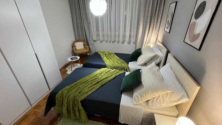 Die Ferienwohnung umfasst zwei Schlafzimmer, ein Wohnzimmer und eine voll ausgestattete Küche, die mit einem Kühlschrank und einer Kaffeemaschine ausgestattet ist. Die zwei Badezimmer sind mit Dusche und kostenlosen Pflegeprodukten versehen. Handtücher und Bettwäsche werden zur Verfügung gestellt und die Unterkunft ist klimatisiert. Sie ist ebenfalls eine Nichtraucherunterkunft.