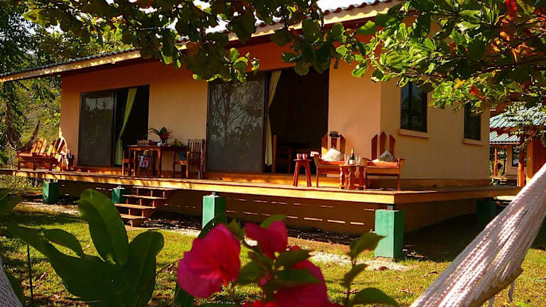 Die Fidelito Ranch & Lodge befindet sich in der Region Puntarenas in Tambor, etwa 800 Meter nördlich der Schule in Panica de Playa Tambor. Die Umgebung bietet eine naturnahe Atmosphäre, ideal für Outdoor-Aktivitäten.