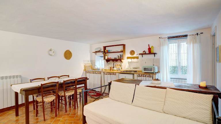 Das Apartment im Fienile verfügt über zwei Schlafzimmer, ein Wohnzimmer, eine voll ausgestattete Küche und ein Badezimmer mit Dusche. Die Terrasse bietet einen atemberaubenden Blick auf die Berge und lädt zum Entspannen und Genießen der Umgebung ein. Handtücher und Bettwäsche werden gestellt, sodass Sie sich um nichts kümmern müssen.