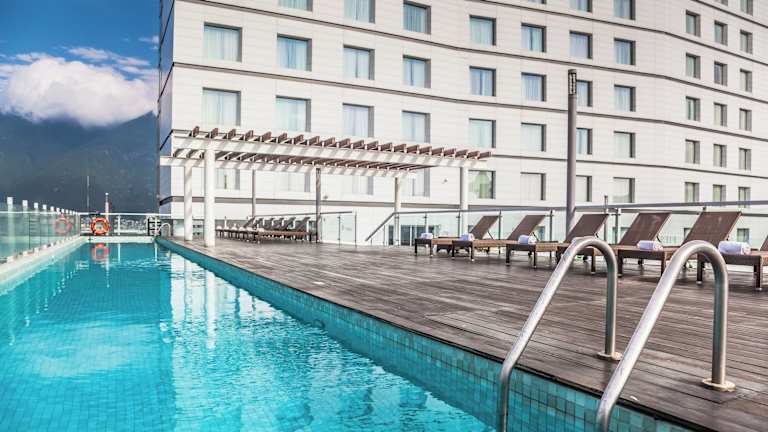 • Die Poolanlage bietet atemberaubende Ausblicke auf das Meer.