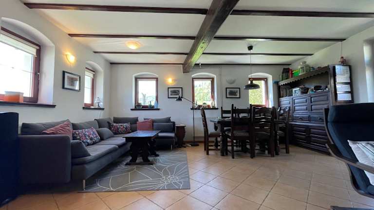 Die Unterkunft befindet sich in der Region Karkonosze und bietet Blick auf den Fluss. Sie liegt etwa 27 km vom Themenpark Western City und 33 km von der Wang-Kirche entfernt. Die nächste Bushaltestelle Strážné ist 45 km entfernt.