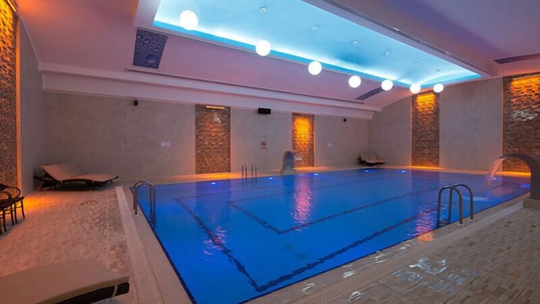 Das Fimar Life Thermal Resort Hotel in Çivi, Amasya, bietet Ihnen einen entspannten und erholsamen Aufenthalt mit Thermalbädern, Innen- und Außenpools, Wellnessbereich und kostenfreiem WLAN. Die modernen Zimmer sind komfortabel eingerichtet und verfügen über Annehmlichkeiten wie Klimaanlage, Minibar und Flachbild-Sat-TV. Genießen Sie ein reichhaltiges Frühstücks- und Abendbuffet sowie köstliche Gerichte im hauseigenen Restaurant. Das Hotel bietet zudem eine Vielzahl von Freizeitaktivitäten wie Billard, Tennis und Spielezimmer. Der Parkplatz ist kostenlos und das freundliche Personal steht Ihnen rund um die Uhr zur Verfügung, um Ihren Aufenthalt angenehm zu gestalten.