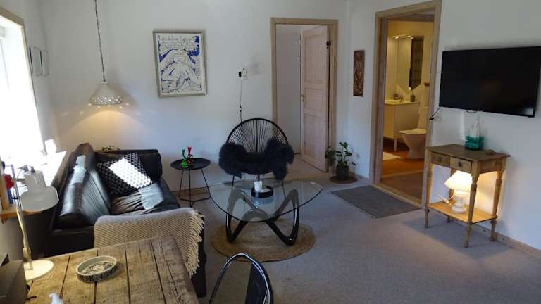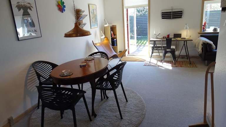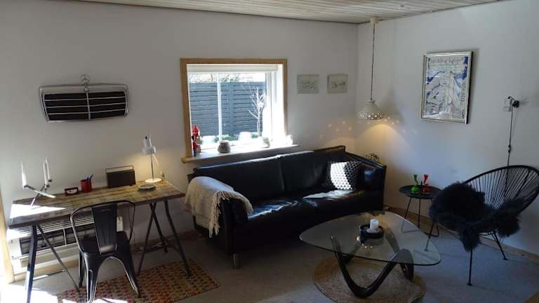 Die Ferienwohnung Fin lejlighed med lukket have bietet eine komfortable Übernachtungsmöglichkeit mit einem eigenen Zugang sowie kostenlosen Parkmöglichkeiten. Es stehen den Gästen kostenlose Fahrräder zur Verfügung sowie eine Terrasse und ein Garten zur Erholung.