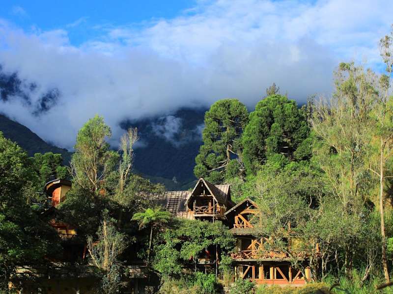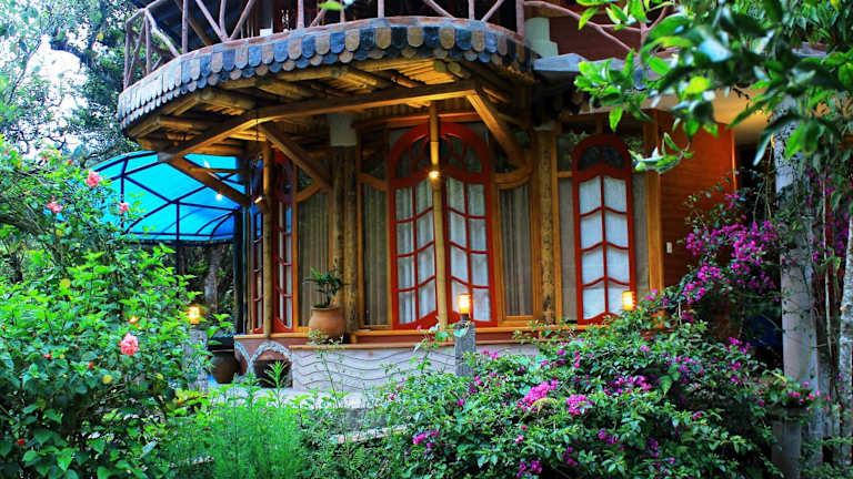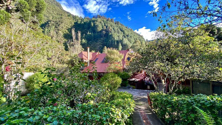 Das Finca Chamanapamba Guest House ist ein zauberhaftes Landhotel, das nur 4 km von der Innenstadt von Baños entfernt liegt. Hier können Sie die Schönheit der Wasserfälle bewundern und einen spektakulären Bergblick sowie tropische Gärten mit Grillmöglichkeiten genießen. Die gemütlichen Holzbungalows bieten Ihnen eine einzigartige Unterkunft mit Flussblick und einem charmanten Holzdekor. Das Hotel bietet Ihnen einen erstklassigen Service mit einer 24-Stunden-Rezeption, Gepäckaufbewahrung und Wäscheservice. Erleben Sie unvergessliche Aktivitäten wie Wandern und erkunden Sie die Umgebung. Die Lage des Hotels ermöglicht es Ihnen, das Stadtzentrum von Baños und den internationalen Flughafen Mariscal Sucre bequem zu erreichen.