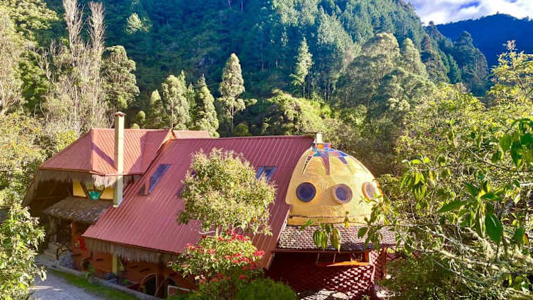 Das Finca Chamanapamba Guest House liegt malerisch auf dem Land, nur 4 km von der charmanten Innenstadt von Baños entfernt. Die Unterkunft bietet einen atemberaubenden Blick auf die umliegenden Berge und ist von üppigen tropischen Gärten umgeben. Von hier aus können Sie die faszinierenden Wasserfälle bewundern und die Schönheit der Natur in vollen Zügen genießen. Die nächste Bushaltestelle ist nur 1 km entfernt und der Busbahnhof von Baños befindet sich in einer Entfernung von 4 km. Mit dem Taxi erreichen Sie das Stadtzentrum von Baños in nur 5 Fahrminuten und den internationalen Flughafen Mariscal Sucre in etwa 3 Stunden.