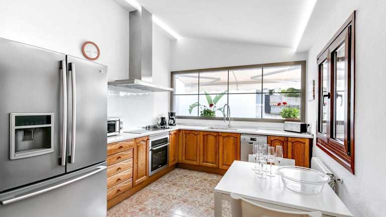 Die Villa bietet Platz in 3 Schlafzimmern und verfügt über 2 Badezimmer. Zur Ausstattung gehören Bettwäsche, Handtücher, ein TV mit Satellitenkanälen, eine voll ausgestattete Küche und eine Terrasse mit Blick auf die Berge.
