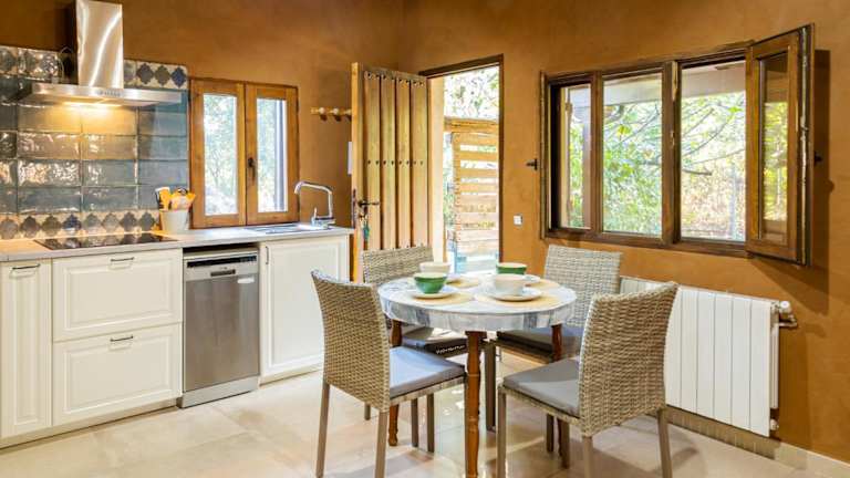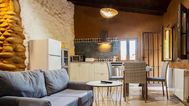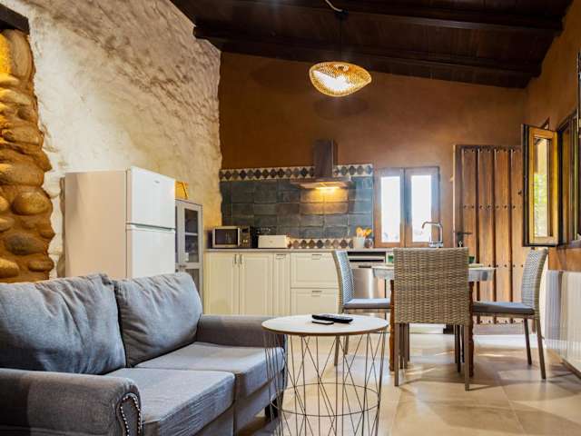 Das Apartment in der Finca MOLINO DE JARANDA - Oropéndolas verfügt über ein Schlafzimmer, ein Bad und einen gemütlichen Wohnbereich. Die Ausstattung umfasst einen Flachbild-Sat-TV, eine voll ausgestattete Küche und einen Essbereich. Handtücher und Bettwäsche werden gestellt, um Ihren Aufenthalt so angenehm wie möglich zu gestalten. Von der Terrasse aus können Sie den Flussblick genießen.