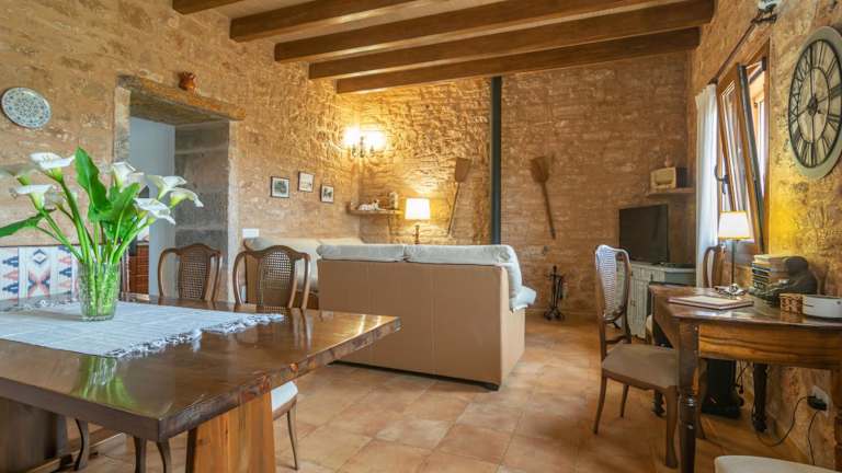 Das Sa Punta Bertumins befindet sich in Ses Salines und ist nur 3 km vom wunderschönen Strand Platja des Port entfernt. Die Lage bietet Ihnen die Möglichkeit, die Ruhe der Umgebung zu genießen, während Sie dennoch in der Nähe von Restaurants, Geschäften und anderen Annehmlichkeiten sind. Der Strand Es Trench ist nur 7 km entfernt und Cala Mondragó erreichen Sie nach 23 km. Für Golfliebhaber liegt der Golfplatz Son Antem nur 35 km entfernt. Der Flughafen Palma de Mallorca ist mit dem Auto in nur 45 Minuten zu erreichen.