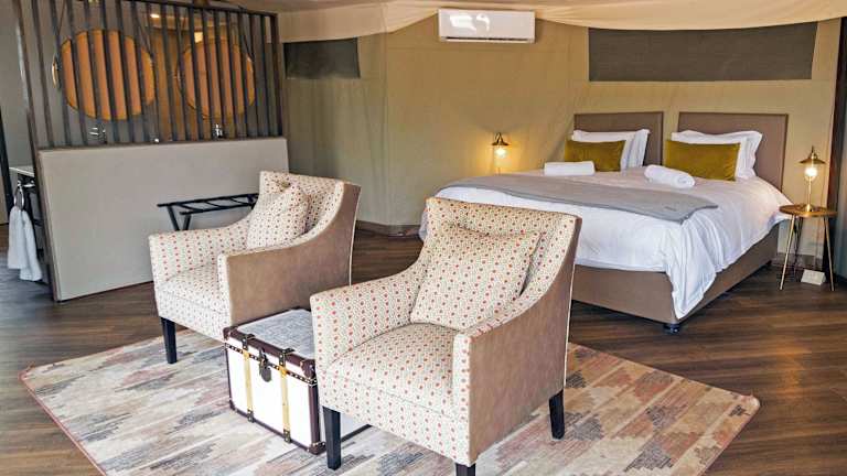 Erleben Sie einen unvergesslichen Aufenthalt im Finfoot Lake Reserve, das sich auf einem 3.500 Hektar großen Reservat befindet. Genießen Sie die malerische Lage am See und profitieren Sie von kostenfreiem WLAN. Das Resort bietet verschiedene Unterkunftsoptionen, darunter Chalets, Villen und Einheiten. Die klimatisierten Chalets sind privat und abgeschieden, umgeben von natürlicher Flora. Sie verfügen über ein eigenes Badezimmer mit Badewanne und Dusche sowie eine private Terrasse. Zur Ausstattung gehören ein Minikühlschrank, Tee- und Kaffeezubehör, ein Haartrockner und ein eigener Patio. Die Familien-Villen bieten zwei Badezimmer, eines mit Dusche und das andere mit Badewanne. Das Resort verfügt auch über eine Selbstversorger-Villa mit Loft-Bereich, privatem Tauchbecken, Grillmöglichkeiten und einer voll ausgestatteten Küche. Im hoteleigenen Restaurant können Sie Frühstück und Abendessen von Set-Menüs sowie Mittagessen à la carte genießen. An der Bar können Sie leckere Cocktails genießen. Das Resort bietet auch zwei große Swimmingpools sowie ein Spielezimmer mit Fernseher, Billardtisch und Gesellschaftsspielen. Das Reservat erstreckt sich über eine Uferlänge von 8 km und beherbergt eine Vielzahl von Wildtieren, Vögeln und Pflanzen. Vor Ort können Aktivitäten wie Wildbeobachtungsfahrten, Kanufahren, Angeln, Bootsfahrten und Segway-Ausflüge gebucht werden. Geführte Buschwanderungen werden ebenfalls angeboten. Ein Spa- und Wellnesscenter steht Ihnen ebenfalls zur Verfügung. Das Resort verfügt außerdem über zwei voll ausgestattete Konferenzzentren mit Platz für bis zu 100 Teilnehmer sowie verschiedene Breakout-Möglichkeiten. Das Pilanesberg National Park ist 75 km vom Finfoot Lake Reserve entfernt und das Zentrum von Johannesburg erreichen Sie nach 168 km. Der nächstgelegene Flughafen ist der Lanseria (Johannesburg) Airport, der 125 km entfernt liegt.