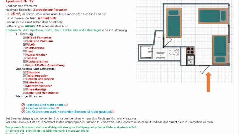 Finkenwerder Larisa's Nr 12 - Mit Parkplatz bietet eine komfortable Ferienwohnung mit einem Schlafzimmer. Die Unterkunft ist mit Grillmöglichkeiten, einem Geldautomaten und einer Gemeinschaftsküche ausgestattet. Ein kostenloser Privatparkplatz ist ebenfalls vorhanden. Der Check-in ist zwischen 15:00 und 23:00 Uhr möglich und der Check-out kann zwischen 05:00 und 11:00 Uhr erfolgen.