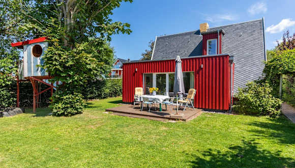 Die Finnhütte bietet einen Balkon sowie einen Garten und verfügt über Terrassen zur Entspannung. WLAN ist kostenfrei verfügbar, ebenso der Parkplatz vor Ort. Die Ferienunterkunft ist ideal für Gäste, die Ruhe und Meerblick suchen und mit Haustieren anreisen möchten, da Hunde willkommen sind und das Grundstück umzäunt ist.
