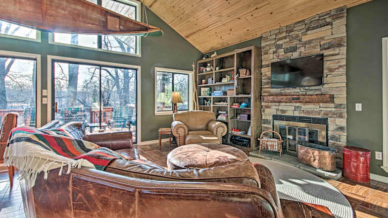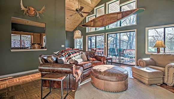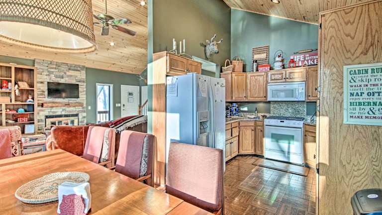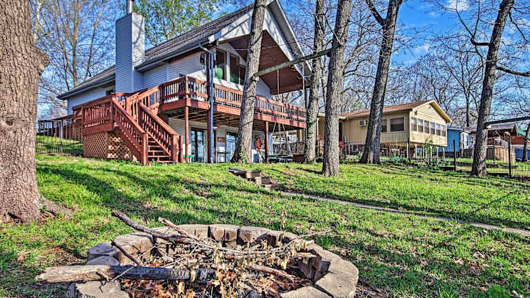 Erleben Sie einen unvergesslichen Aufenthalt im Waterfront Getaway mit Feuergrube und Boot Slip! in Grove. Genießen Sie die modernen Annehmlichkeiten, wie kostenfreies WLAN und eine voll ausgestattete Küche. Das klimatisierte Ferienhaus bietet Platz für bis zu 8 Personen und verfügt über 4 Schlafzimmer. Handtücher und Bettwäsche werden gestellt, sodass Sie sich sofort wie zu Hause fühlen können. Der nächstgelegene Flughafen ist der Regionalflughafen Northwest Arkansas, der etwa 84 km entfernt liegt.
