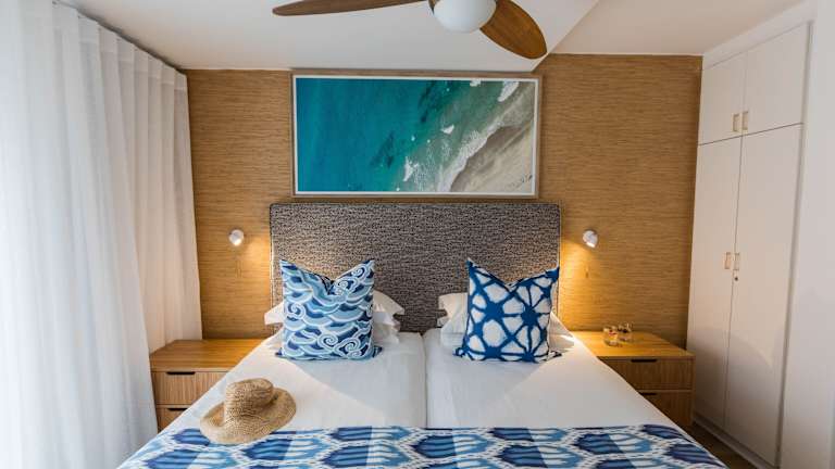 Die Zimmer sind mit einem Wohnzimmer, einer Küche und einem Badezimmer ausgestattet. Sie verfügen über einen Balkon oder eine Terrasse mit Meerblick. Zur Ausstattung gehören ein Doppelbett oder ein Kingsize-Bett, ein Kühlschrank, ein Herd, eine Mikrowelle sowie Kaffee- und Teezubereitungsmöglichkeiten. WLAN, ein Fernseher, ein DVD-Player und ein Bügelset sind vorhanden. Das Badezimmer ist mit einer Dusche, einer Badewanne und kostenlosen Pflegeprodukten ausgestattet. Für spezielle Bedürfnisse stehen rollstuhlgerechte Zimmer zur Verfügung.