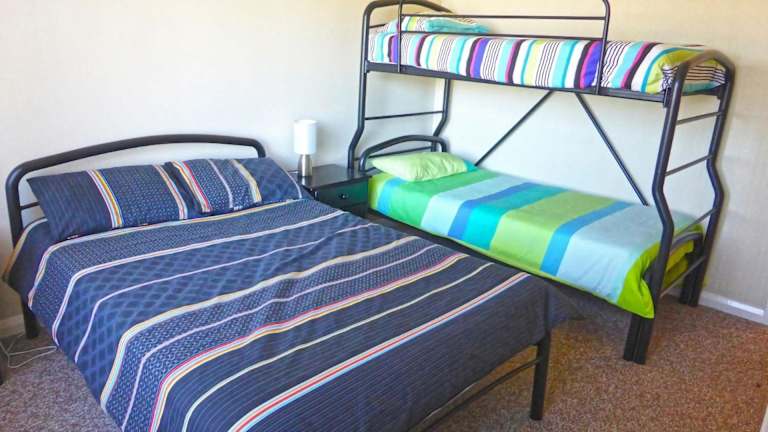 Das Ferienhaus bietet drei separate Schlafzimmer sowie eine voll ausgestattete Küche. Handtücher und Bettwäsche werden zur Verfügung gestellt.