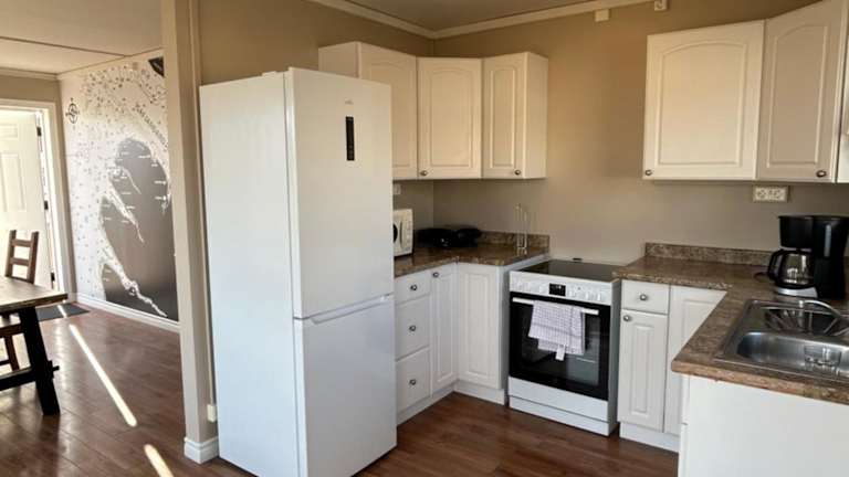 Das Chalet verfügt über 3 Schlafzimmer, ein Wohnzimmer, ein Badezimmer mit Dusche sowie eine gut ausgestattete Küche mit Kühlschrank und Ofen. Zur Ausstattung gehören zudem ein Flachbild-TV und eine Veranda / Patio mit Blick auf die Stadt.