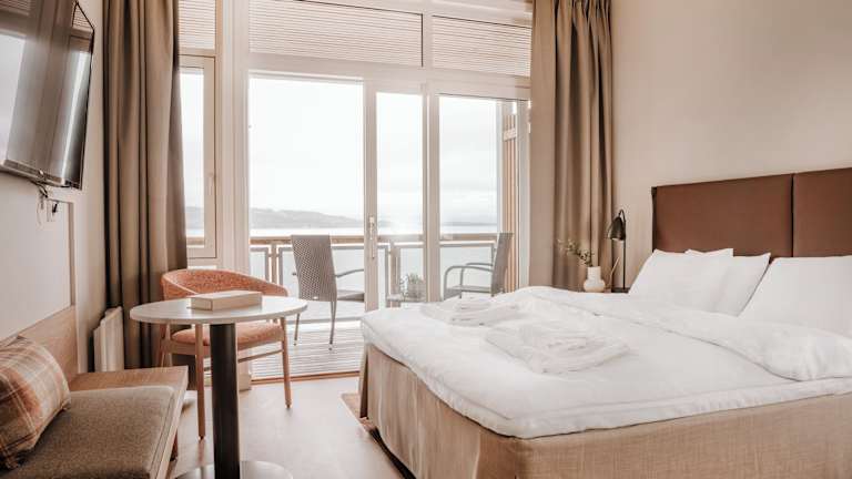 Die Zimmer im Jegtvolden Fjordhotell sind gemütlich eingerichtet und bieten allen Komfort, den Sie für einen angenehmen Aufenthalt benötigen. Jedes Zimmer verfügt über einen Sitzbereich, einen Schreibtisch und einen Flachbild-TV. Die meisten Zimmer bieten auch eine Terrasse mit direktem Zugang zum Garten, von wo aus Sie eine herrliche Aussicht auf das Meer und den Garten genießen können. Kostenloses WLAN ist in allen Zimmern verfügbar.