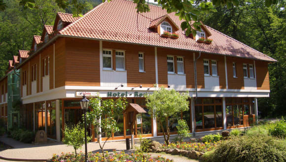 Lage/Umgebung: Das Hotel befindet sich in einem der schönsten Täler des Harzes, dem wildromantischen Ilsetal. Schon Heinrich Heine ließ sich von dem Tal inspirieren und verzaubern. Ein wunderschönes ursprüngliches Naturparadies erwartet Sie mit unzähligen Wanderwegen direkt ab dem Hotel, so u.a. zu den Ilsewasserfällen und weiter zum sagenumwobenen Brocken, zur Eckertalsperre oder zum „Grünen Band“ (ehemaliger Harzer Grenzweg). Eine absolut ruhige Lage des Hotels (kein Durchgangsverkehr!) in einem Bestand alter Buchen direkt am Nationalpark Harz ist garantiert. Das sehr schöne 1000jährige Fachwerkstädtchen Ilsenburg mit seiner ebenso alten Benediktiner-Klosteranlage lädt zum Bummeln und Verweilen ein.